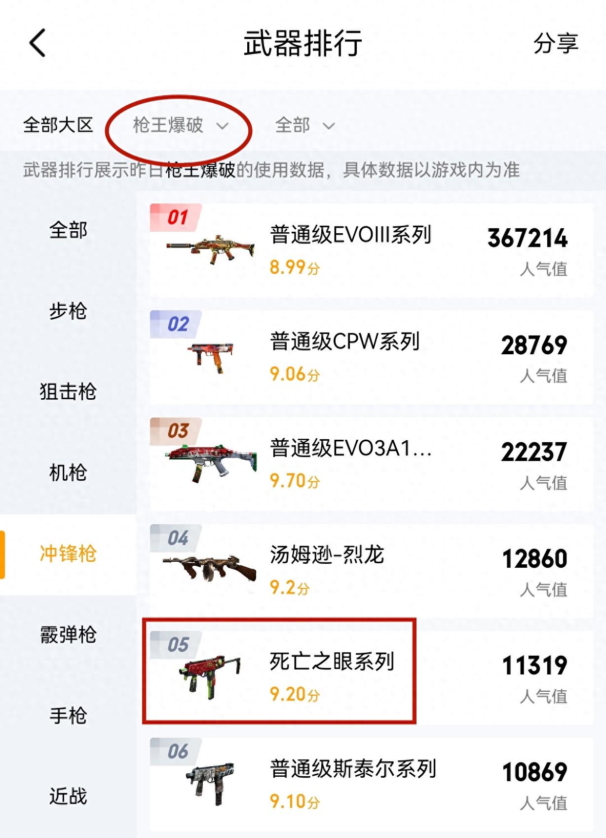 在冲锋枪的排行榜上,死亡之眼的排名甚至高于斯泰尔系列,这可不是偶然。这一现象引发了我的思考:为什么如此多的玩家愿意在爆破模式中使用死亡之眼?